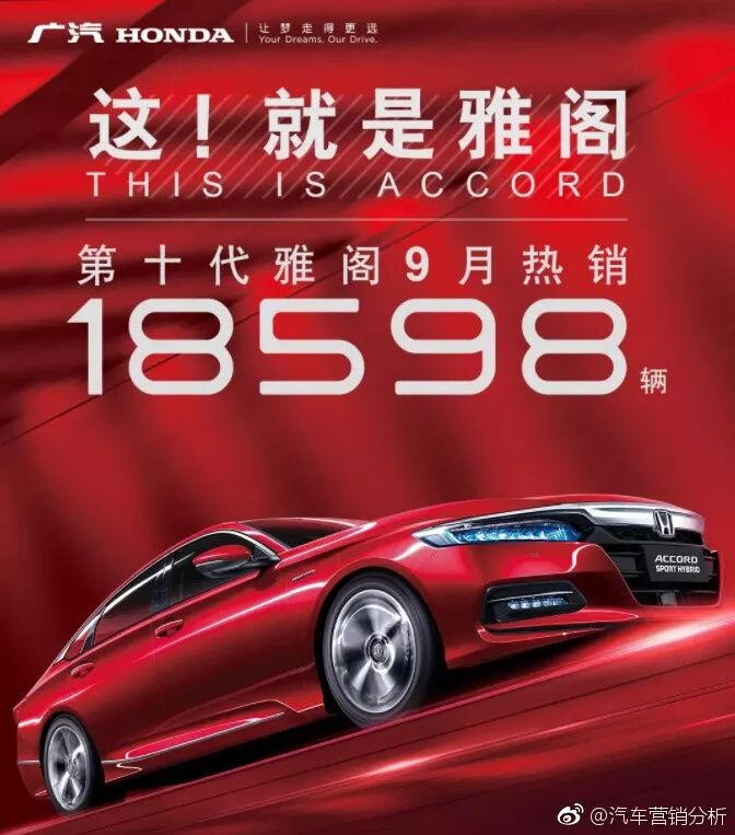 具体车型来看,刚过完国庆假期,广汽本田就迫不及待地公布第十代雅阁的销量成绩,数据显示9月份十代雅阁新车销售达到16,369辆,有望超越广汽丰田凯美瑞。得益于雅阁混动车型的上市,在售价上也有惊喜,雅阁的销量才能快速上涨。