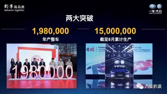 伴随着实现累计生产整车1500万辆、年产整车突破198万辆的双突破,一汽-大众在新能源、智能网联等领域的发展与创新营销、企业社会责任以及对员工工作环境改善等方面所取得的成果同样值得骄傲。