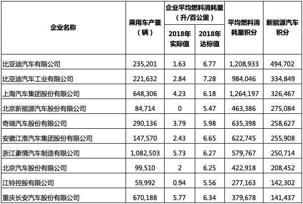 昨天(4月9日),工信部公示了2018年度的双积分情况。