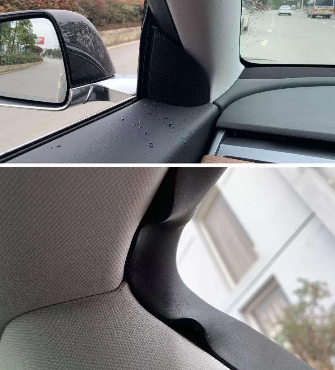 同时,还有一些明显的问题也令人发指,手感毛糙的方向盘、密封条褶皱、雨刮每次刮水都会把水甩到车内...
