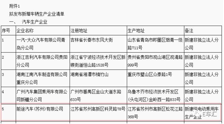 3月16日,工信部发布《道路机动车辆生产企业及产品公告》(第306批)拟发布的新增车辆生产企业及已准入企业变更信息名单,前途汽车(苏州)有限公司(简称“前途汽车”)进入拟发布新增车辆生产企业清单。公示截止3月22日,届时如果没有变化,前途汽车将正式获得纯电动乘用车生产资质。