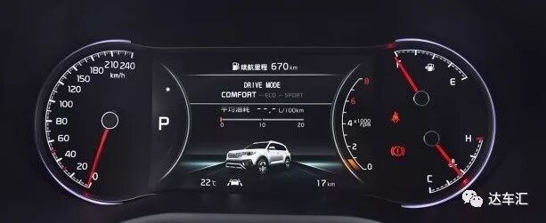 新车采用的是半机械半液晶仪表盘,中间7英寸的液晶屏除了显示丰富的行车信息之外,还能在舒适、运动、节能三种驾驶模式任意切换。