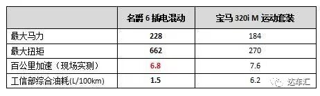 名爵6插电混动搭载了MG E-DRIVE 智驱插电混合动力系统,采用1.0T涡轮增压发动机和电动机的组合,综合马力228匹,峰值扭矩622牛·米,百公里加速成绩是6.8s。但是宝马320i作为2.0T低功率版本,百公里加速确实不如名爵6插电混动。